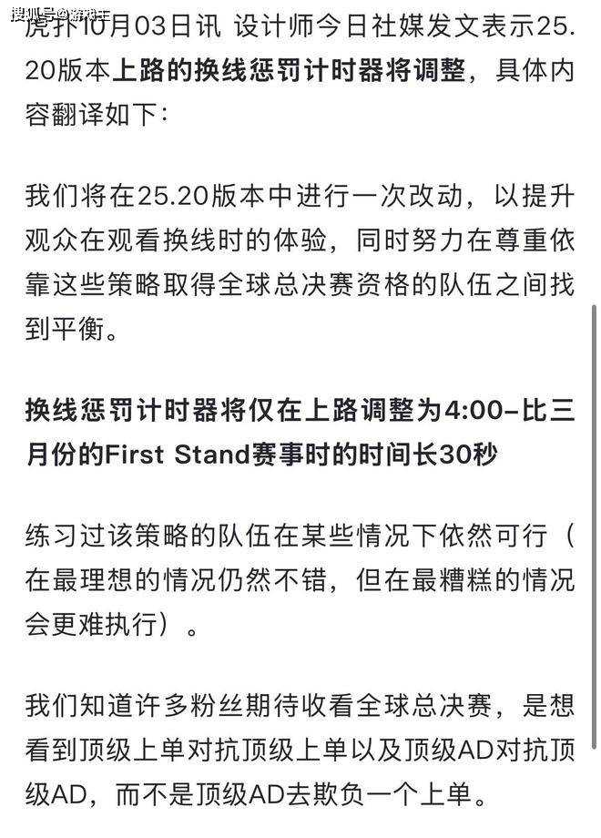 为了改变这一现状,官方也是增加了惩罚机制,在第一赛段的世界赛对抗中,官方就,增加了这个惩罚机制,进攻方会受到很大的削弱,从小兵获得的经验和金币直接减少50%。防御塔对英雄造成的伤害增加1000%。这一次,官方再次加强了换线分半,延长到了四分钟。这就极大程度地提高了对线的效率,对于lpl赛区来说,有好有坏,比如al战队,他们就非常渴望这种换线的战术。主教练tabe一直也是在延续这套玩法,甚至在增加了惩罚机制之后,还在强行玩这套战术。